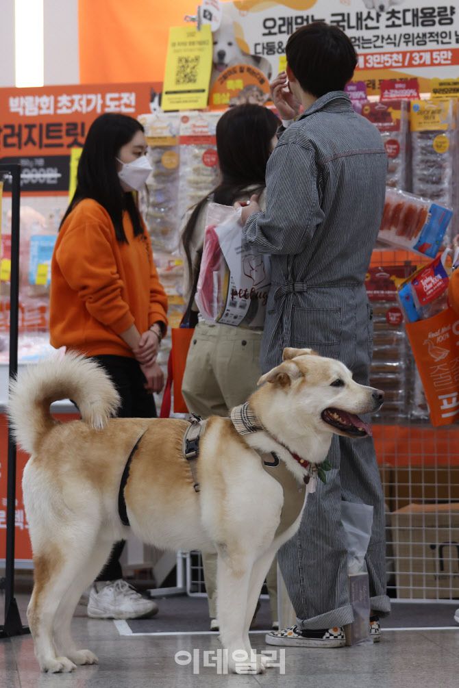 [이데일리 이영훈 기자] 반려동물 박람회 ‘2023 케이펫페어 서울’이 24일 서울 강남구 세텍에서 열린 가운데 강아지와 함께 온 관람객들이 제품을 보고 있다.