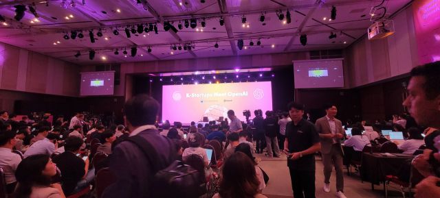 샘 올트먼 오픈AI 최고경영자(CEO)와 이영 중소벤처기업부 장관의 대담이 시작되기 1시간 전인 9일 오전 10시 서울 여의도 63빌딩 그랜드볼룸. 취재진에 배정된 100여 석의 자리는 대부분 찼고 약 30분이 지나자 국내 인공지능(AI) 스타트업 관계자를 위해 배치한 약 200석의 자리마저 꽉 차서 더 이상 입장이 어려웠다. 챗GPT를 개발해 전 세계에서 가장 핫한 딥테크 기업으로 떠오른 오픈AI에 대한 국내 벤처·스타트업 업계의 뜨거운 관심이 전해졌다. 이날 행사장을 찾은 현지웅 뤼튼테크놀로지스 리드는 “인공지능과 챗GPT, 오픈AI에 관심을 가지고 있는 사람으로서 올트먼이 이야기하는 것을 직접 들어보고 싶어 일찍 왔다”며 “기회가 주어진다면 프롬프트 엔지니어링의 한계에 대해 질문하고 싶다”고 말했다.