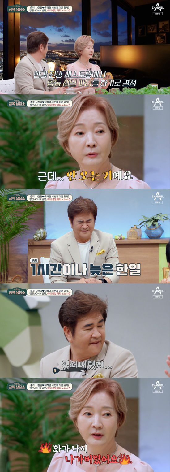 9일 방송된 채널A '오은영의 금쪽상담소'에서는 나한일, 유혜영 부부가 세 번째 결혼 1주년을 맞아 오은영 박사를 다시 만났다.