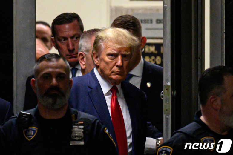 도널드 트럼프 전 미국 대통령이 4일(현지시간) ‘성관계 입막음’ 등 34개 중범죄 혐의 기소인부 절차를 위해 뉴욕 맨해튼에 있는 형사법원에 도착을 하고 있다. ⓒ AFP=뉴스1 ⓒ News1 우동명 기자 |
