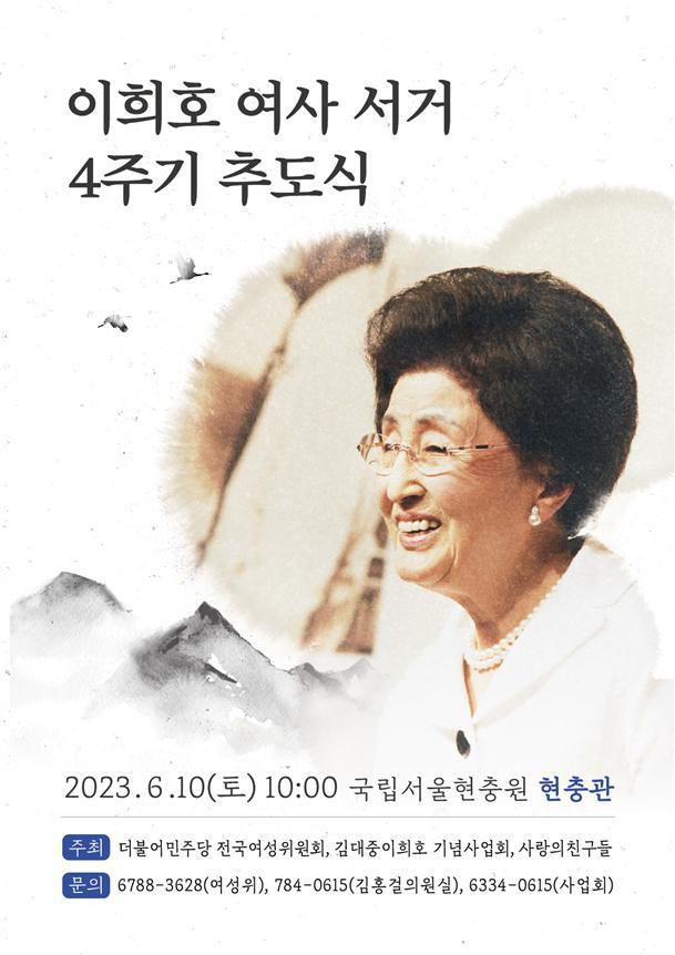 [서울=뉴시스]고(故) 이희호 여사 서거 4주기를 맞아 10일 추도식이 열릴 예정이다. <더불어민주당 전국여성위원회 제공> 2023.06.10. photo@newsis.com *재판매 및 DB 금지