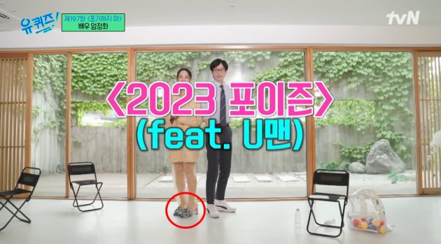최근 tvN '유퀴즈 온 더 블록'에 촬영한 엄정화의 뮬 슬리퍼가 주목을 끌었다. 엄정화가 신은 뮬 슬리퍼는 해외 브랜드 D사의 제품.