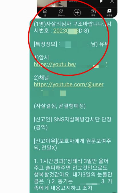 '자살의심자 구조 바랍니다. 자살 결심, 곧 결행 예정.'