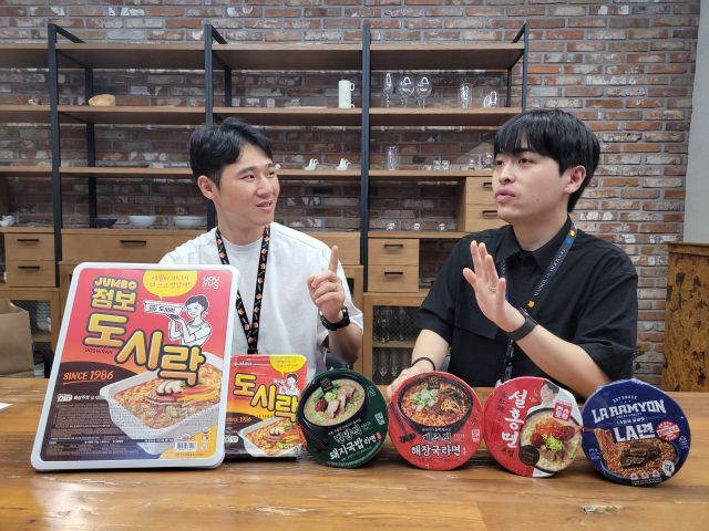 하지만 그럴 만한 보람은 있었다. 팔도 컵라면 ‘도시락’을 8.5배 크기로 키워 개발한 PB상품 ‘점보도시락’이 수일 만에 완판되며 인기를 끌면서다. 김대종 GS25 기획담당 MD와 이진우 운영담당 MD의 이야기다.