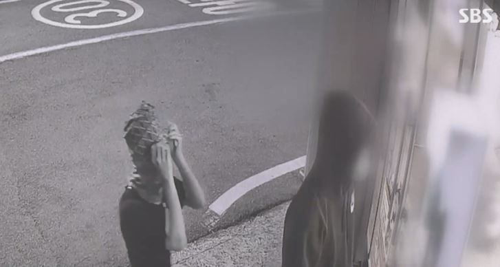 지난 8일 부산 해운대구 한 편의점 앞에 복면과 마스크, 모자 등을 쓰고 나타난 남성 2명. SBS뉴스 방송화면 캡처 |