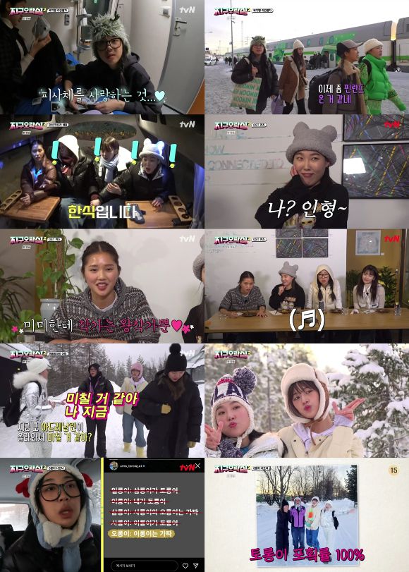 앞서 이은지, 미미, 이영지, 안유진은 헬싱키에서 야간열차를 타고 핀란드 두 번째 여행지를 향해 달려갔다. 폴라로이드 사진으로 기차에서의 추억을 남기거나 아름다운 풍경을 바라보며 함께 아침을 먹는 모습은 소소한 즐거움을 선사했다.