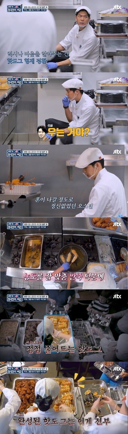 이날 오스틴강은 배식대에서 점점 떨어져가는 핫도그를 보며 이연복에게 "먼저 핫도그 반죽부터 해야 할 것 같다"라며 세밀하게 상황을 체크했다.
