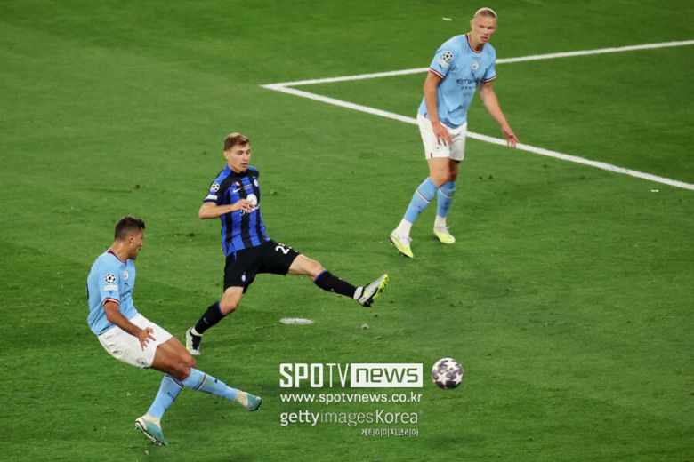 0-0 균형은 후반 23분 깨졌다. 집요하게 하프라인을 파고들었던 맨체스터시티가 작품을 만들었다. 베르나르두 실바가 하프라인을 돌파하자 때 아칸지의 패스가 투입됐다. 실바의 컷백으로 로드리에게 노마크 기회가 만들어졌다. 로드리가 오른발로 날린 슈팅이 오나나 골키퍼를 뚫고 인테르밀란 골망을 흔들었다.