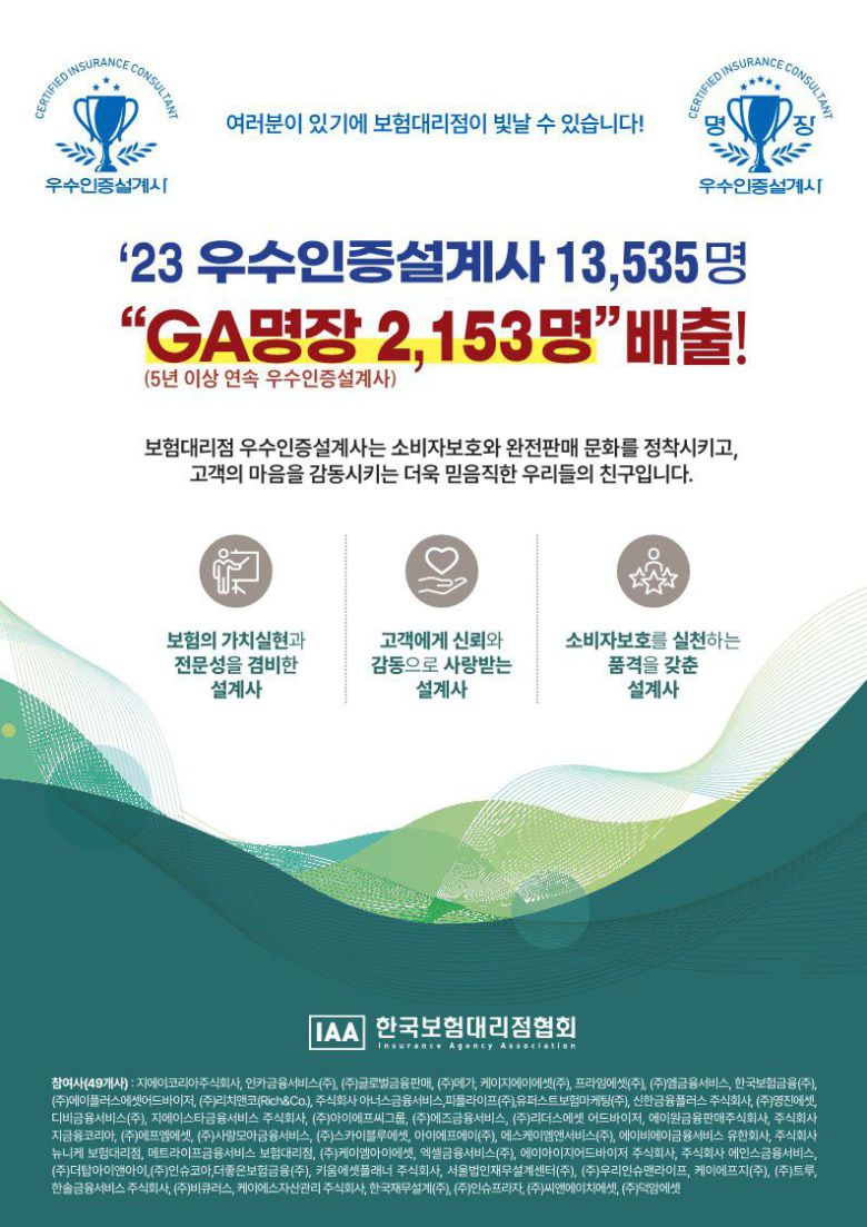 한국보험대리점협회, GA 우수인증설계사 1만3535명 최종 선발