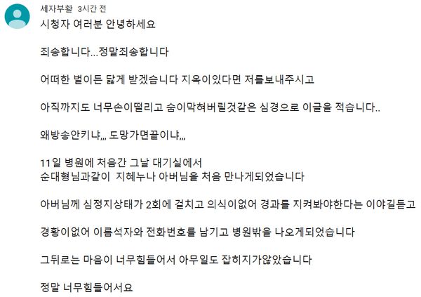 이어 "그 뒤로 마음이 힘들어서 아무 일도 잡히지가 않았다"며 "그러던중 12일부터 지혜누나 어머님과 연락이 닿게 됐다"고 설명했다.