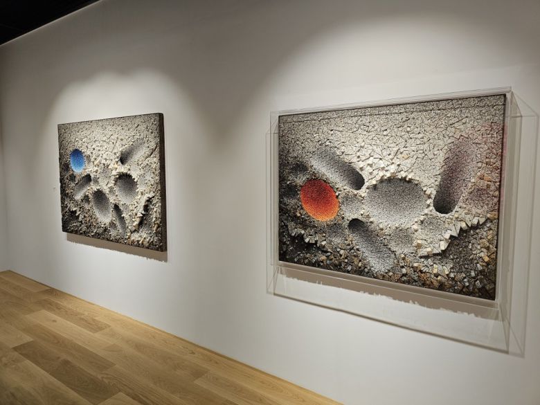 제주 한국폴로클럽 아트갤러리에서 열리고 있는 전광영 작가 초대전. 전통한지를 활용한 ‘집합’ 시리즈. |