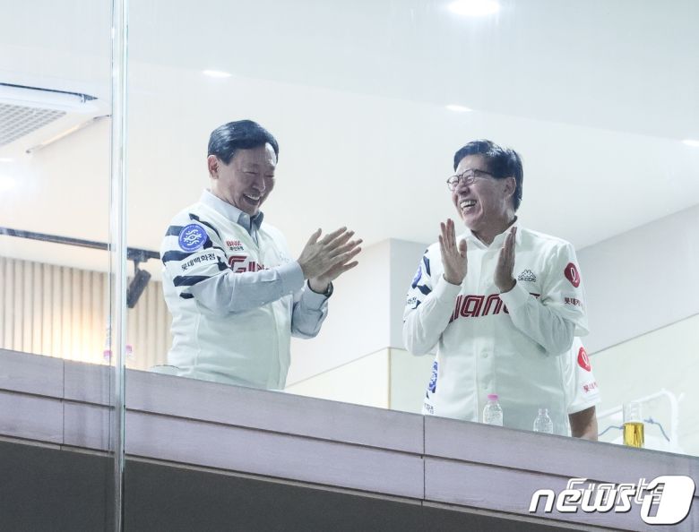 신 회장은 롯데 자이언츠 로고가 새겨진 구단 점퍼를 챙겨 입고 스카이박스에서 선수들을 응원했다. 시구자로 나선 박형준 부산광역시장이 배석했다.