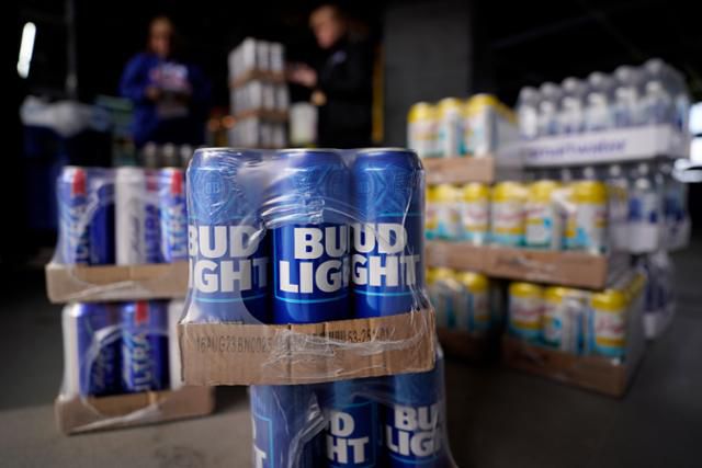 올해 4월 미국 필라델피아의 한 소매점에 버드라이트 맥주가 쌓여 있다. 필라델피아=AP 연합뉴스