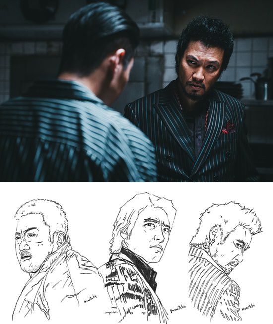 또 아오키 무네타카도 '범죄도시3' 포스터 속 마석도, 주성철, 리키의 얼굴을 싱크로율 100%의 스케치 솜씨로 그려내며 그림 실력을 인증했다.