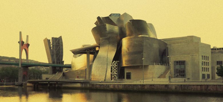 프랭크 게리가 건축한 스페인 빌바오 구겐하임미술관. 이 미술관은 빌바오를 부흥시켜 ''빌바오 효과''라는 말을 만들어내고 1999년 프랭크 게리가 프리츠커상을 받으면서 우리 시대의 가장 위대한 건축물로 평가받는다. [빌바오 구겐하임 미술관 홈페이지]