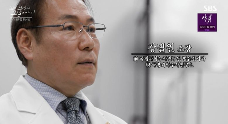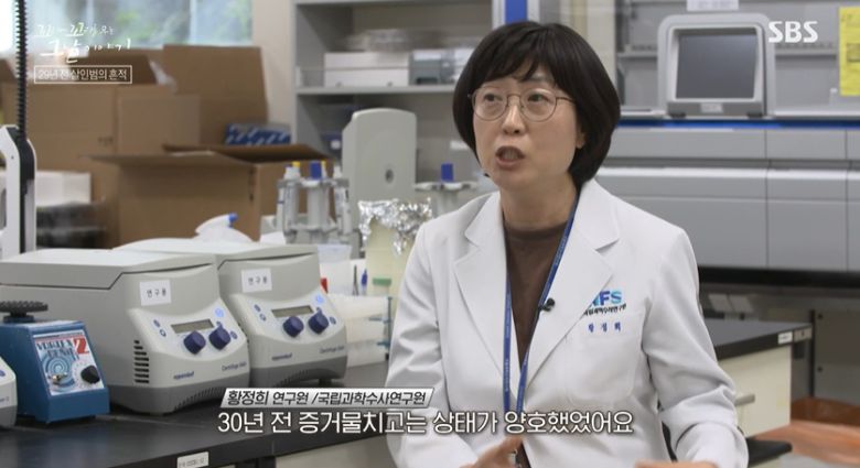 기막힌 우연이였어. 그렇게 찾아 헤맸던 증거품이 오산경찰서 과수팀에 있다는 거야. 이 형사는 곧장 과수팀으로 달려가서 고은이 사건의 증거품 박스를 찾았어. 그리고 국립과학수사연구원에 넘겼어. 감정 의뢰를 받은 사람은 국립과학수사연구원의 강필원 과장. 30년 가까이 DNA 분야를 연구한 베테랑이야.