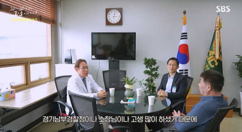 "소장님 덕분에 무죄도 밝혀졌고. 남부경찰청이나 소장님이나 고생을 많이 하셨기 때문에 감사하다고 말씀드리고 싶어서 왔습니다. 항상 우리 소장님이나 경찰들이나, 고생하시는 분들을 국민들이 알아줬으면 좋겠는데, 그 당시 경찰들이 잘못했다고 해도 지금 경찰들은 잘하고 있으니까. 저는 거기에 감사드리고…"