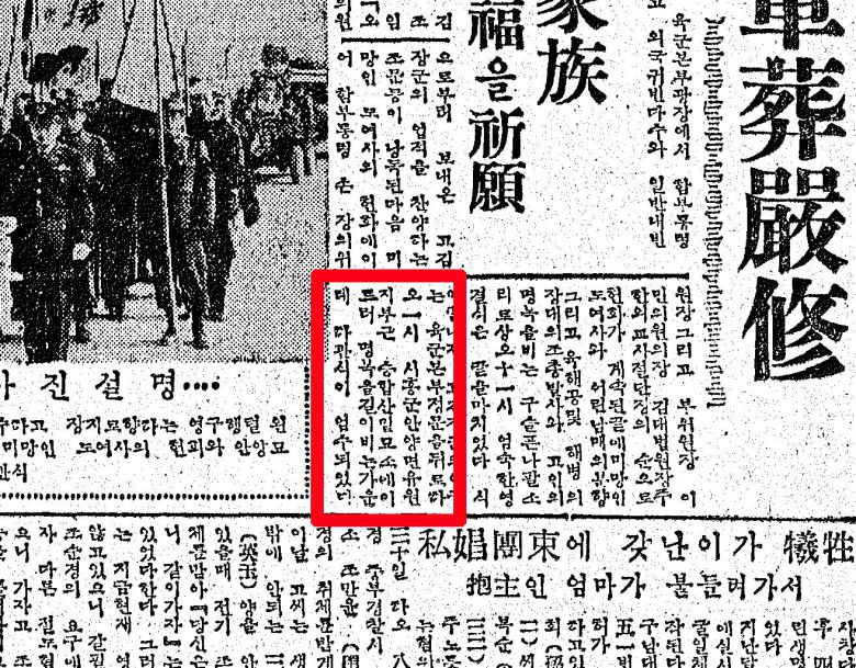 '김창룡이 안양에 안장됐다'고 보도한 1956년 2월 5일자 조선일보. |