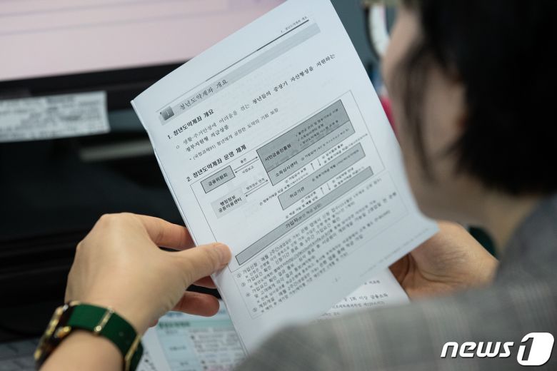 15일 서울 중구에 위치한 청년도약계좌 비대면 상담센터에서 한 상담사가 청년도약계좌 관련 자료를 살피고 있다. 2023.6.15/뉴스1 ⓒ News1 유승관 기자