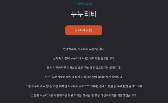 실시간동영상서비스(OTT) 업체와 방송사 등이 제공하는 콘텐츠를 국내외에서 온라인으로 불법 제공한 ‘누누티비’를 모방한 웹사이트 ‘누누티비 시즌2’가 결국 종료됐다.