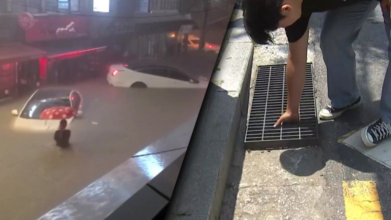 수십kg에 이르는 하수구 맨홀 뚜껑이 차오르는 빗물 압력에 날아가기도 했습니다.