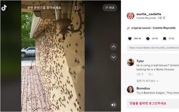 네바다주 엘코시 주민 콜레트 레이놀즈가 올린 '모르몬 귀뚜라미' 떼 영상. 콜레트 레이놀즈(Colette Reynolds) 틱톡 영상 캡처 |