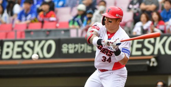 KIA 타이거즈 최형우는 20일 열린 한화 이글스와 원정 경기에서 투런포를 쏘아 올려 이승엽 두산 베어스 감독이 갖고 있던 개인 통산 최다 타점 기록(1498점)을 넘어섰다. 최형우는 2점 홈런으로 개인 1500타점 고지에 올랐다. KBO리그 최초다. [사진=뉴시스] |