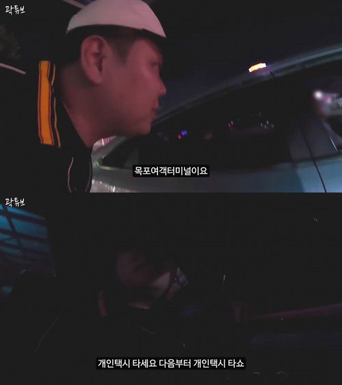 이날 영상에서 이들은 목포역에서 여객터미널까지 택시를 타기로 했다. 곽튜브는 역 앞에서 기다리던 한 택시에 "목포 여객터미널에 간다"고 말한 뒤 빠니보틀과 함께 탑승했다.