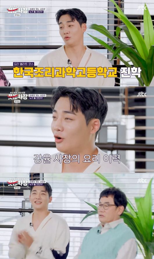 강율은 “맛내는 방법은 확실히 알고 있다. 중학교 2학년 때부터 요리 시작을 했다. 그러다가 조리과학고등학교에 진학했다”라며, “제가 스카웃 받았다. 학비 전액 지원을 받고 이탈리아 3대 요리학교로 불리는 학교”라고 이력을 말했다. 또 “다양한 요리 대회 수상했다”라며 자신만의 레시피북을 공개하기도 했다.