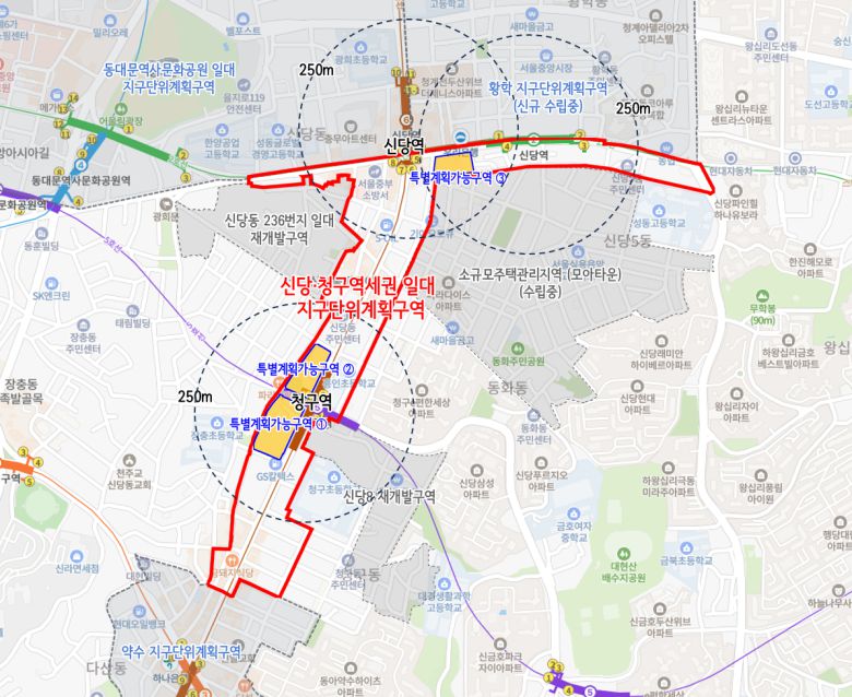 신당·청구역세권 일대 지구단위계획구역 위치도 |