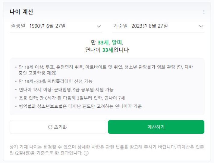 네이버 나이계산기 캡처 |