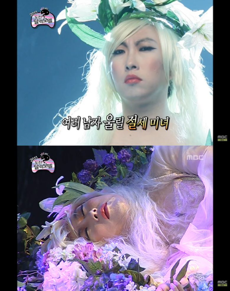 당시 '무도' 멤버들은 셰익스피어의 희극 '한여름 밤의 꿈'을 테마로 각자 등장인물로 변신해 포즈를 취했다. 박명수는 요정들의 여왕인 티타니아로 분했는데, 이 모습이 마치 뉴진스 멤버들의 몽환적인 모습과 닮아있어 눈길을 끌었다.