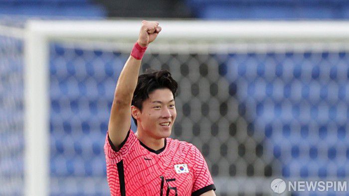 [도쿄 로이터=뉴스핌] 신호영 인턴기자 = 28일 도쿄올림픽 남자축구 조별리그 B조 최종전 대한민국과 온두라스의 경기가 요코하마 국제 스타디움에서 열렸다. 대한민국 황의조가 페널티킥으로 네번째 골을 성공시키고 환호하고 있다. 2021.7.28 shinhorok@newspim.com |