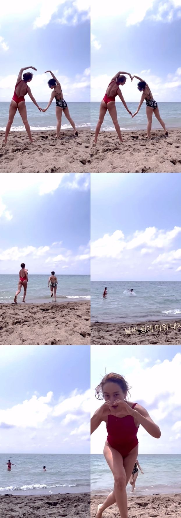 영상에서 옥주현은 강렬한 레드 컬러의 수영복을 입고 늘씬하면서도 탄탄한 몸매와 도드라지는 등 근육을 뽐내며 이지혜와 함께 커다란 하트를 만드는 모습이다. 옥주현은 과감히 뒤태를 노출한 수영복으로 눈길을 끈다.