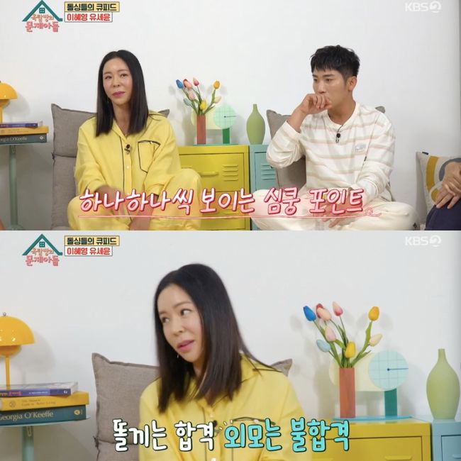 5일 방영된 KBS2TV 예능 ‘옥탑방의 문제아들’(이하 ‘옥문아들’)에서는 ‘돌싱들의 워너비’ 이혜영과 ‘천재 뼈그맨’ 유세윤이 출연했다.