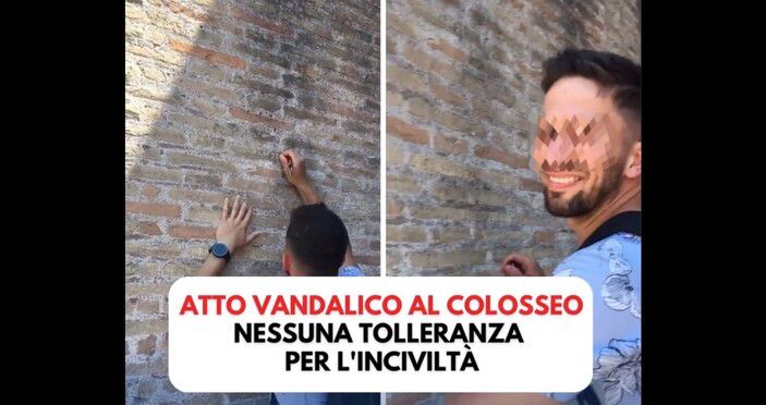 이탈리아 로마 고대 유적 콜로세움에 열쇠로 이름을 새겼다가 처벌을 받게 된 영국인 관광객. 젠나로 산줄리아노 이탈리아 문화부 장관 트위터 갈무리 |