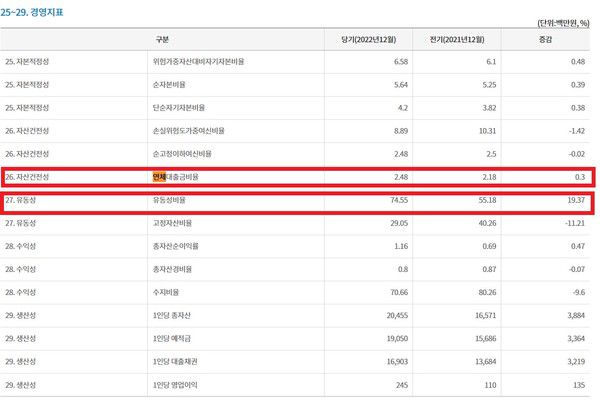해당 글에 따르면 새마을금고 사이트에 접속 후 '정기공시' 메뉴에서 기준년도와 기준월, 해당지점명을 입력한다. 공시내용 중에 '자산건전성-연체대출금비율'과 '유동성 비율'을 확인해야 한다.