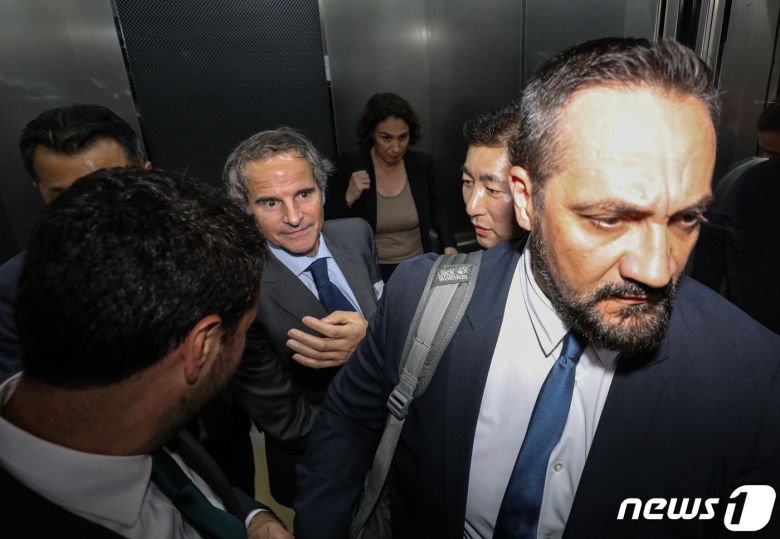 (서울=뉴스1) 이동해 기자 = 라파엘 그로시 국제원자력기구(IAEA) 사무총장이 7일 저녁 서울 강서구 김포공항 국제선에 도착, 시민단체의 항의를 피해 다른 곳으로 이동하고 있다. 그로시 사무총장의 이번 방한은 일본의 최인접국인 한국에 후쿠시마 원전 오염수 해양 방류와 관련한 IAEA의 종합 보고서 내용을 설명하기 위한 행보로 박진 외교부 장관과 유국희 원자력안전위원회 위원장을 만나는 등 2박3일 일정을 소화할 예정이다. 2023.7.7/뉴스1