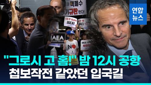 [영상] IAEA 사무총장 입국길부터 험난…"그로시 고 홈!" 격렬 시위