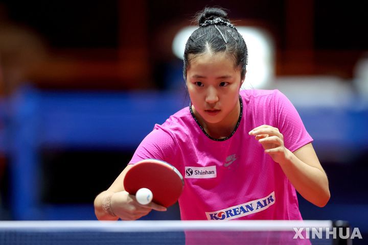 [자그레브=신화/뉴시스] 신유빈(11위)이 지난달 30일(현지시각) 크로아티아 자그레브에서 열린 2023 월드테이블테니스(WTT) 컨텐더 자그레브 여자 단식 16강전에서 마니카 바트라(38위·인도)와 경기하고 있다. 신유빈이 3-0(13-11 11-5 16-14)으로 승리하고 8강에 올라 쑨잉(1위·중국)과 격돌한다. 2023.07.01. |