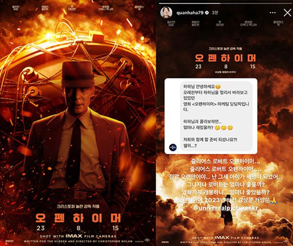 이러한 인연으로 배급사 유니버설 픽쳐스를 통해 하하가 '오펜하이머'의 공식 홍보대사로 발탁된 소식이 전해지며 2023 버전 독후감에도 기대감이 더해지고 있다.