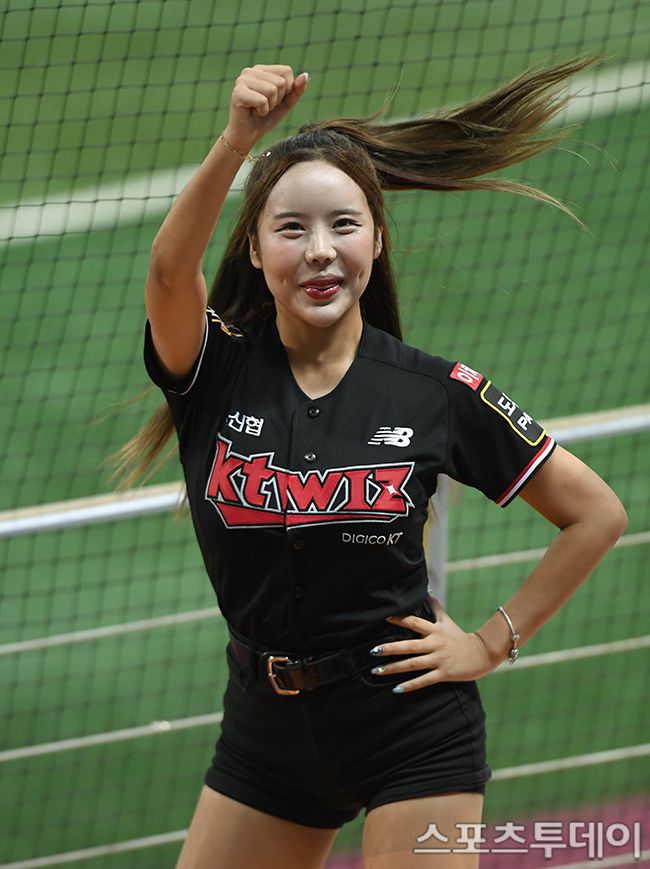 [스포츠투데이(고척)= 권광일 기자] 2023 신한은행 SOL KBO리그 KT 위즈와 키움 히어로즈 경기가 11일 오후 서울 고척스카돔에서 열렸다. 치어리더 박성아가 흥겨운 응원을 선보이고 있다. 2023.07.11. [스포츠투데이 권광일 기자 sports@stoo.com]이 기사의 카테고리는 언론사의 분류를 따릅니다.0공유하기