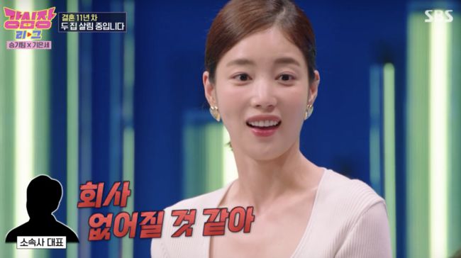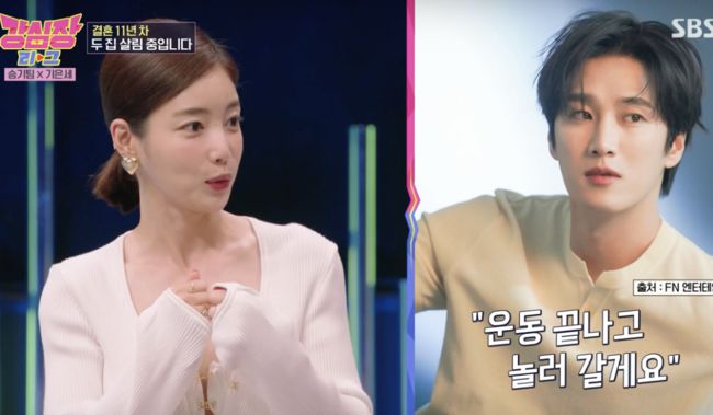 11일 방송된 SBS예능 ‘강심장 리그'에서 배우 기은세의 썸네일을 공개,결혼 11년차인 그는 ‘두집 살림 중’이라는 충격 근황을 전했다.