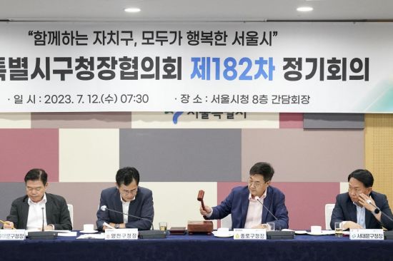 서울특별시구청장협의회(회장 정문헌 종로구청장)는 12일 오전 7시 30분 서울시청 8층 간담회장에서 제182차 정기회의를 개최했다.
