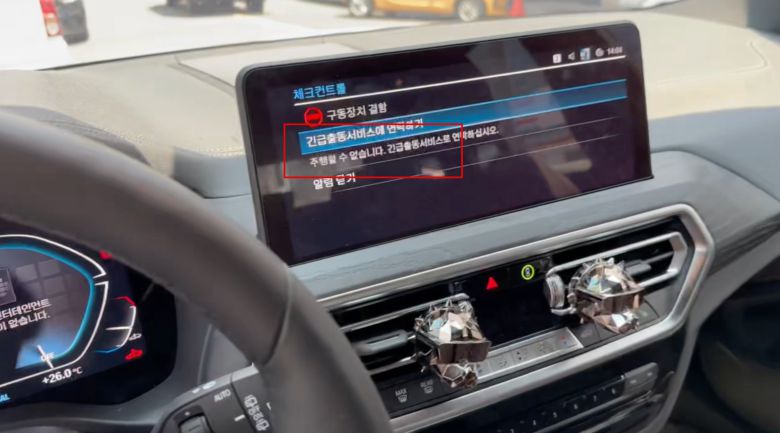 작년 10월 BMW 전기차 iX3를 구입한 김동오 씨는 최근 완속 충전이 잘되지 않는 현상을 겪었다. 출고 후 6000㎞를 주행하는 동안 수 차례 완속 충전 문제를 겪었던 김 씨는 지난달 도로 위에서 ‘구동장치 결함’이라는 내용의 경고와 함께 주행할 수 없다는 메시지를 받았다. 이어 갑자기 변속이 되지 않는 ‘동력 상실’ 문제가 나타나, 김 씨는 긴급출동서비스를 불러 서비스센터에 차를 입고했다.
