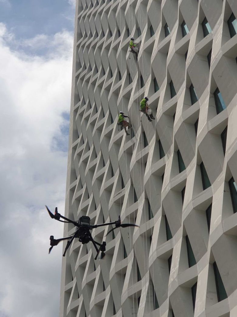 뷰메진이 드론을 이용해 서울시에 위치한 한 건물에서 안전진단을 준비하고 있다. 사진=뷰메진