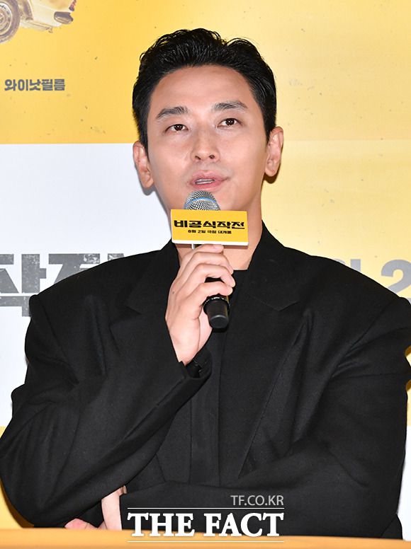 배우 하정우와 주지훈, 김성훈 감독(왼쪽부터)이 13일 오후 서울 강남구 메가박스 코엑스에서 열린 영화 '비공식작전' 기자간담회에 참석하고 있다. /박헌우 기자 |