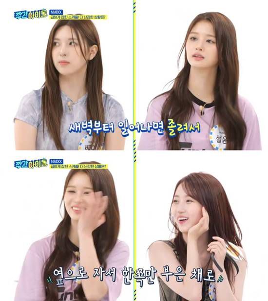 그리고 "실제로 컴백을 하면 사녹(사전 녹화)을 새벽부터 하니까 되게 피곤하다. 나중에는 옆으로 자니까 한 쪽만 얼굴이 부어서 인터뷰를 할 때도 있더라"라고 말해 웃픈 일화를 전했다.