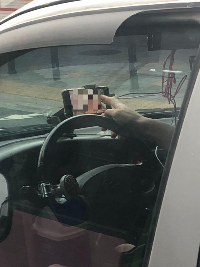 해당 사진에는 운전석 대시보드 위에 올려진 휴대전화 화면에 음란 영상이 재생되는 모습이 담겨있었다. 사진 속 운전자는 화면을 손가락으로 만지작 거리며 영상을 시청 중이었다.
