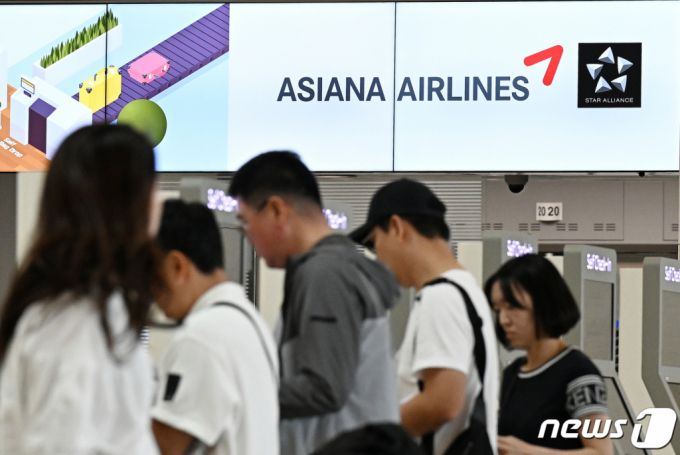 인천국제공항 제1터미널 내 아시아나항공 체크인 카운터. 2023.6.7/뉴스1  Copyright (C) 뉴스1. All rights reserved. 무단 전재 및 재배포 금지.